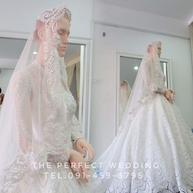 ชุดเจ้าสาวอิสลาม สวยๆ...ชุดสีขาวดอกกุหลาบใหญ่ (ร้านเดอะเพอร์เฟคเวดดิ้ง ละงู สตูล)